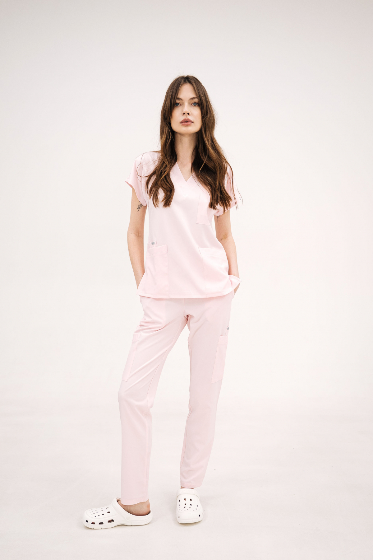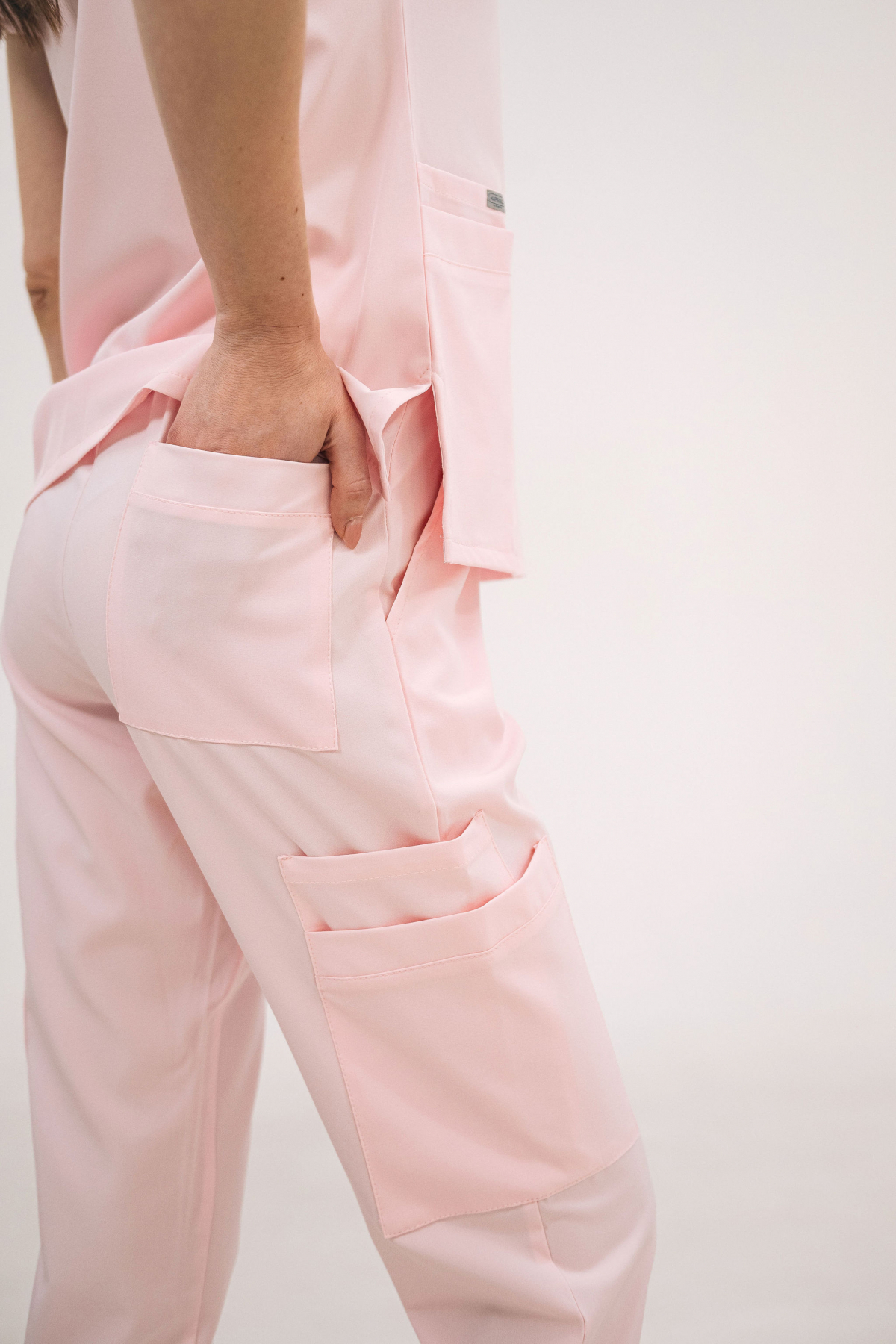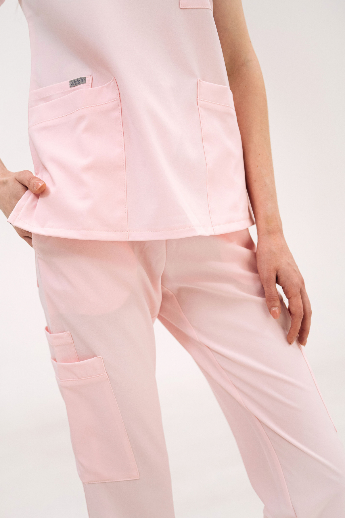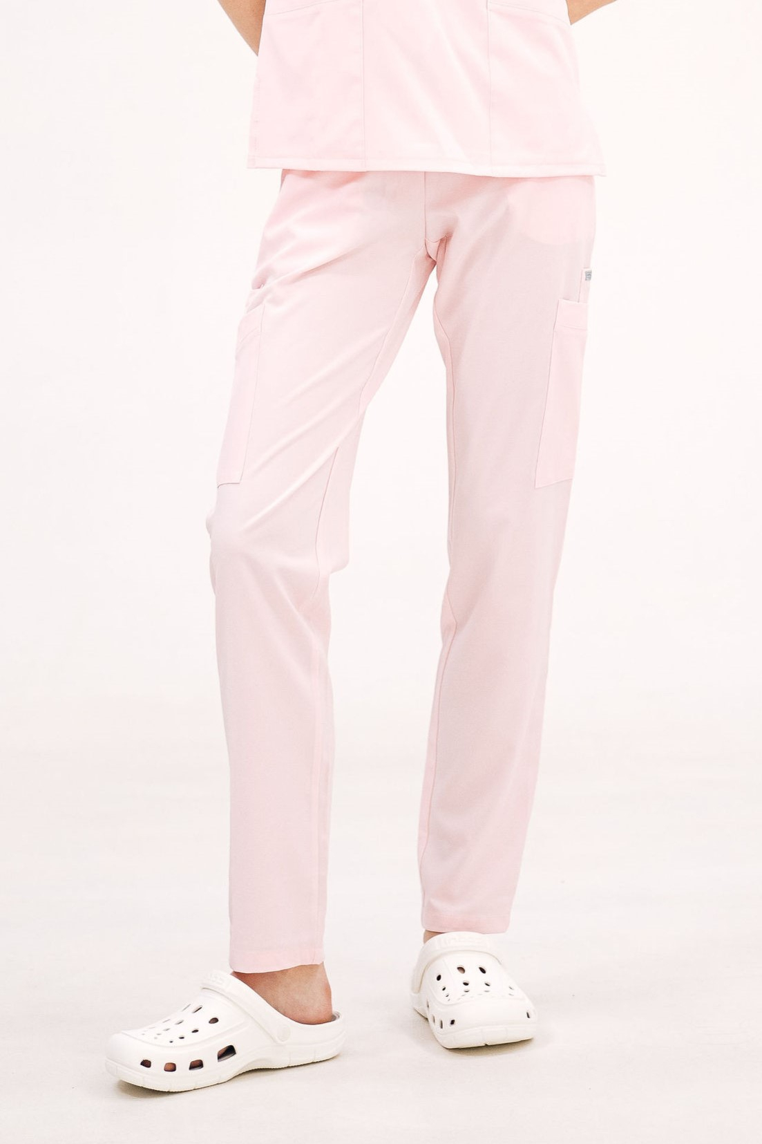 Pas wykonany z dzianinowej gumki, wyposażony w szlufki oraz firmowy sznurek z metalowymi końcówkami. Dwie przednie kieszenie z ukośnym wejściem, naszywana kieszeń na prawej tylnej części, a także po dwie naszywane kieszenie w bocznych szwach — praktyczne rozwiązanie do przechowywania niezbędnych drobiazgów.